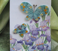 Орхидеями в технике квиллинг можно декорировать поздравительную открытку, например, вот так: