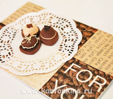 Делаем ещё один такой же и приклеиваем оба к открытке, на подходящие места.